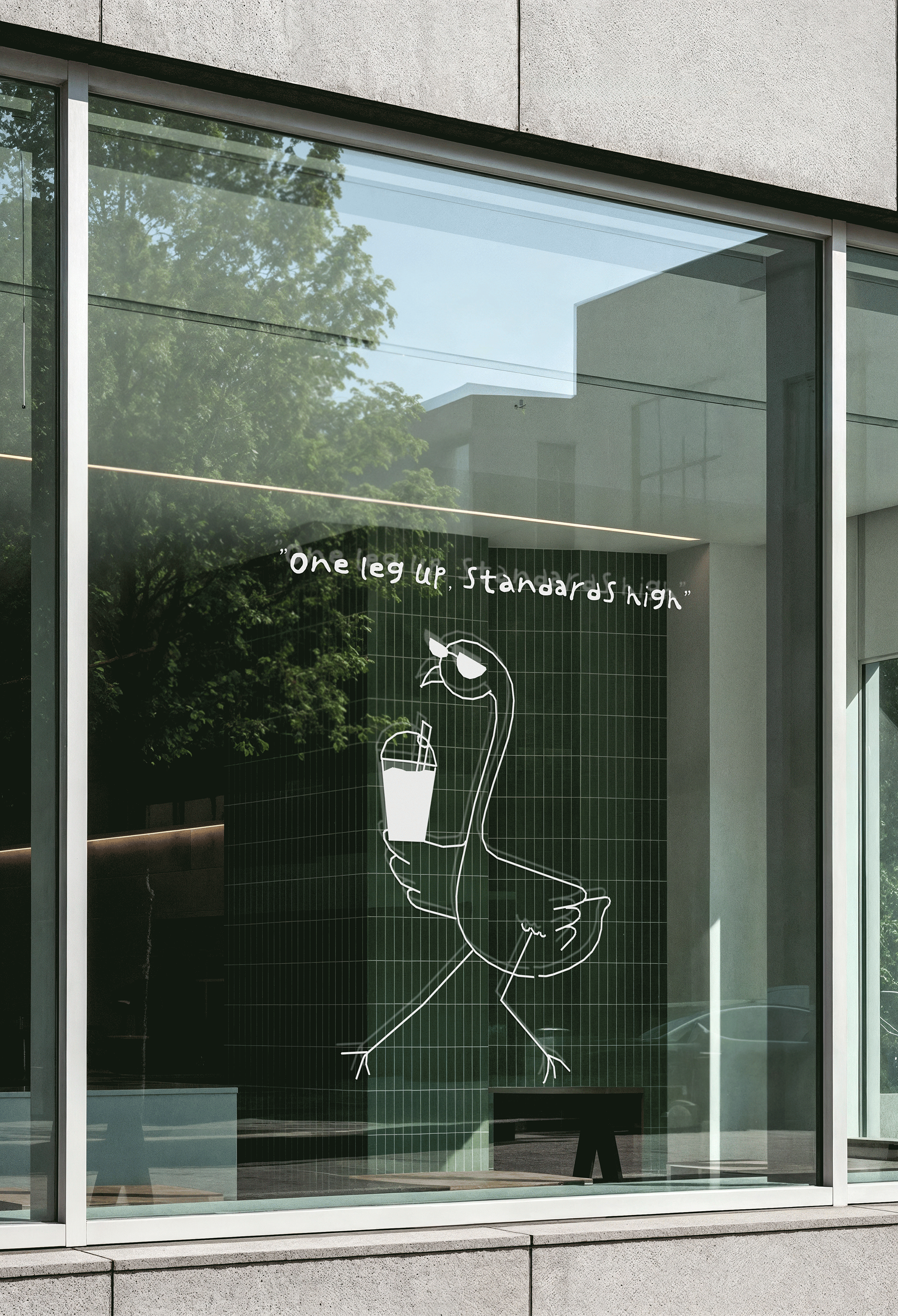 Solution: The branding centers around a flamingo mascot that acts as the voice of the brand, illustrated in humorous scenarios interacting with matcha. A vibrant palette combined with bold typography and witty copy, creates a confident and expressive visual system. The result is a fun, modern take on matcha branding that turns the brand into a character customers can connect with.