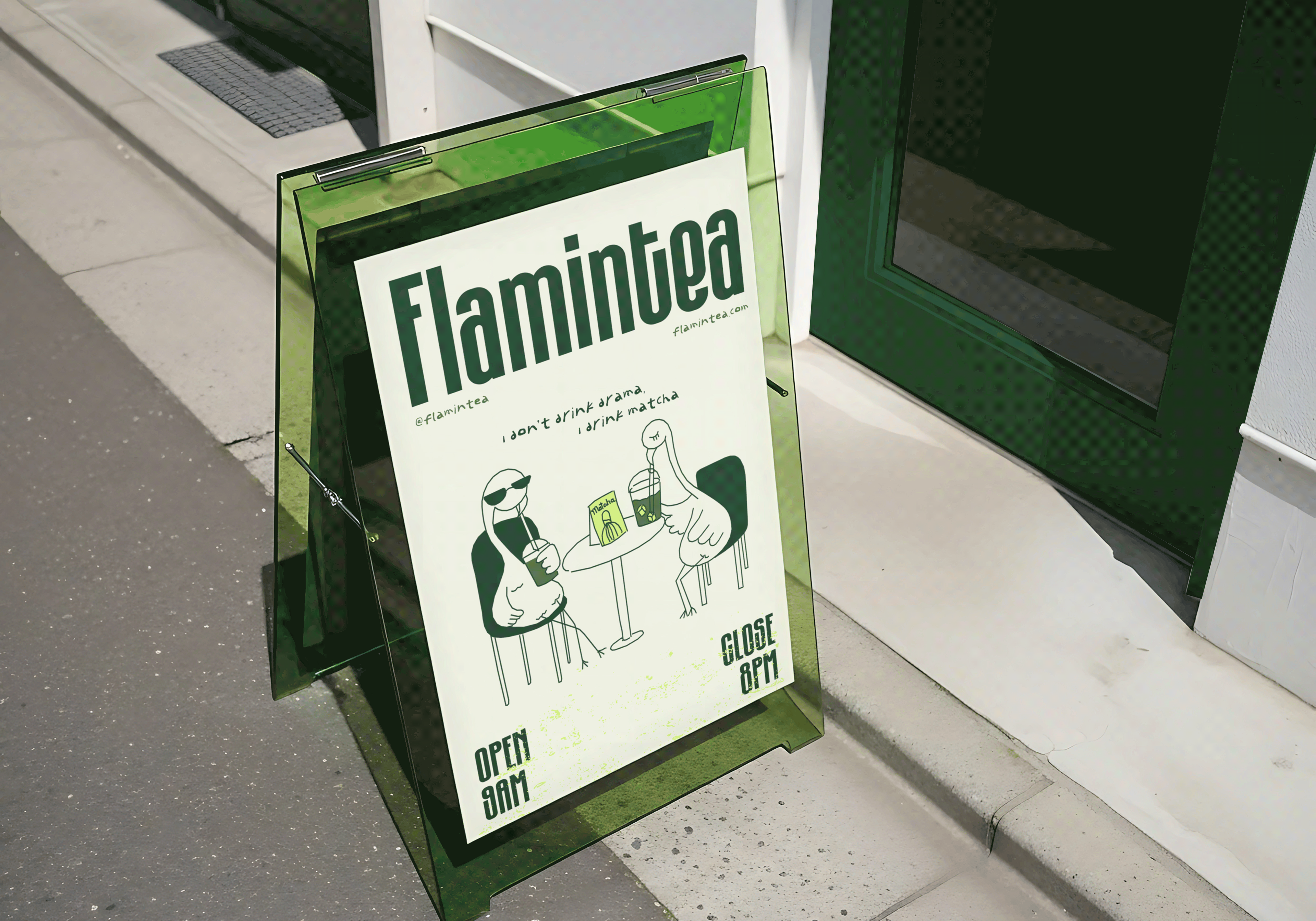 Brief: Flamintea is a conceptual matcha brand designed to break away from the traditional calm and minimal aesthetic of matcha culture. The goal was to create a bold, playful identity that feels approachable, memorable, and driven by personality, while still referencing the ritual and quality of matcha.
