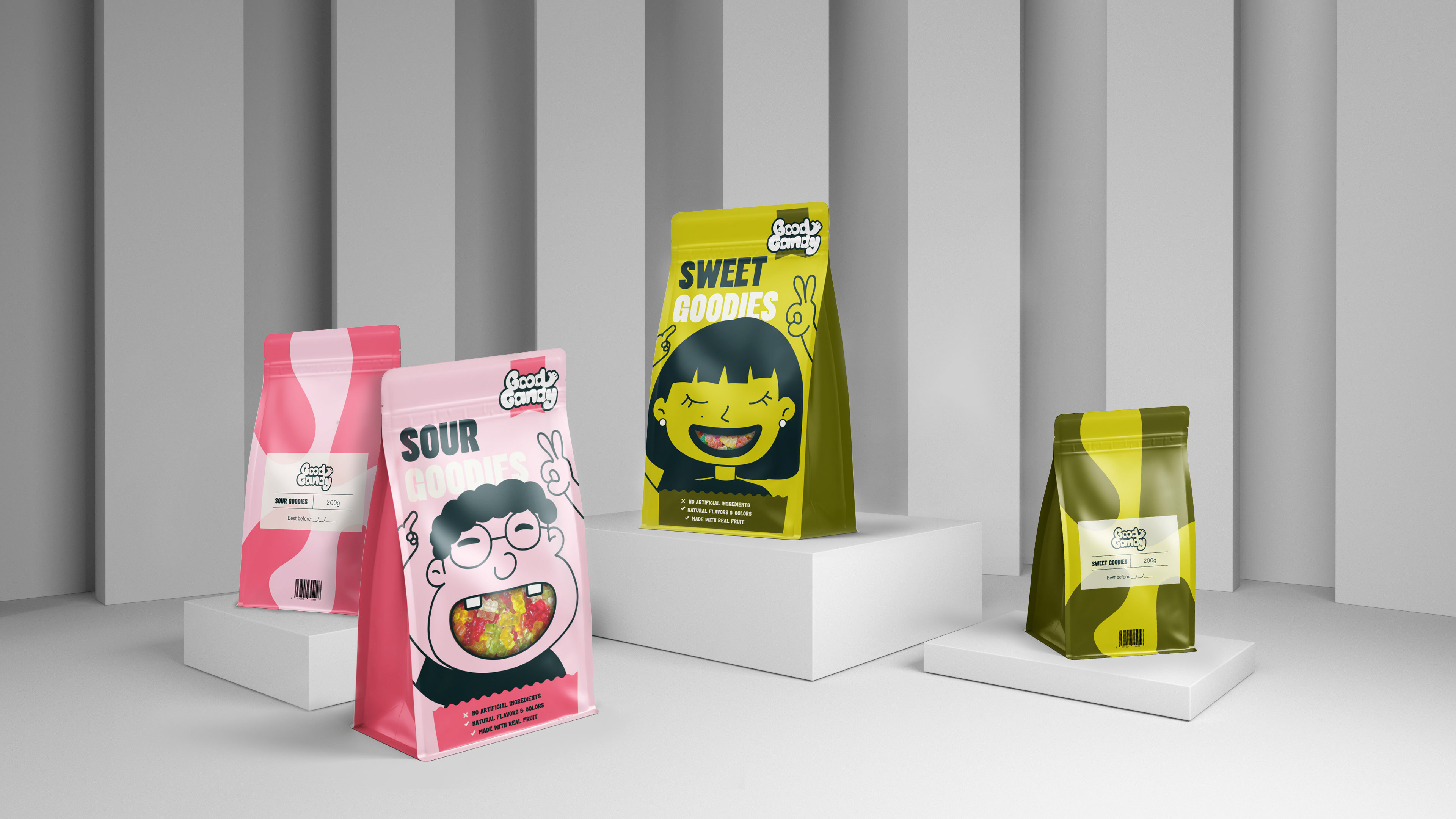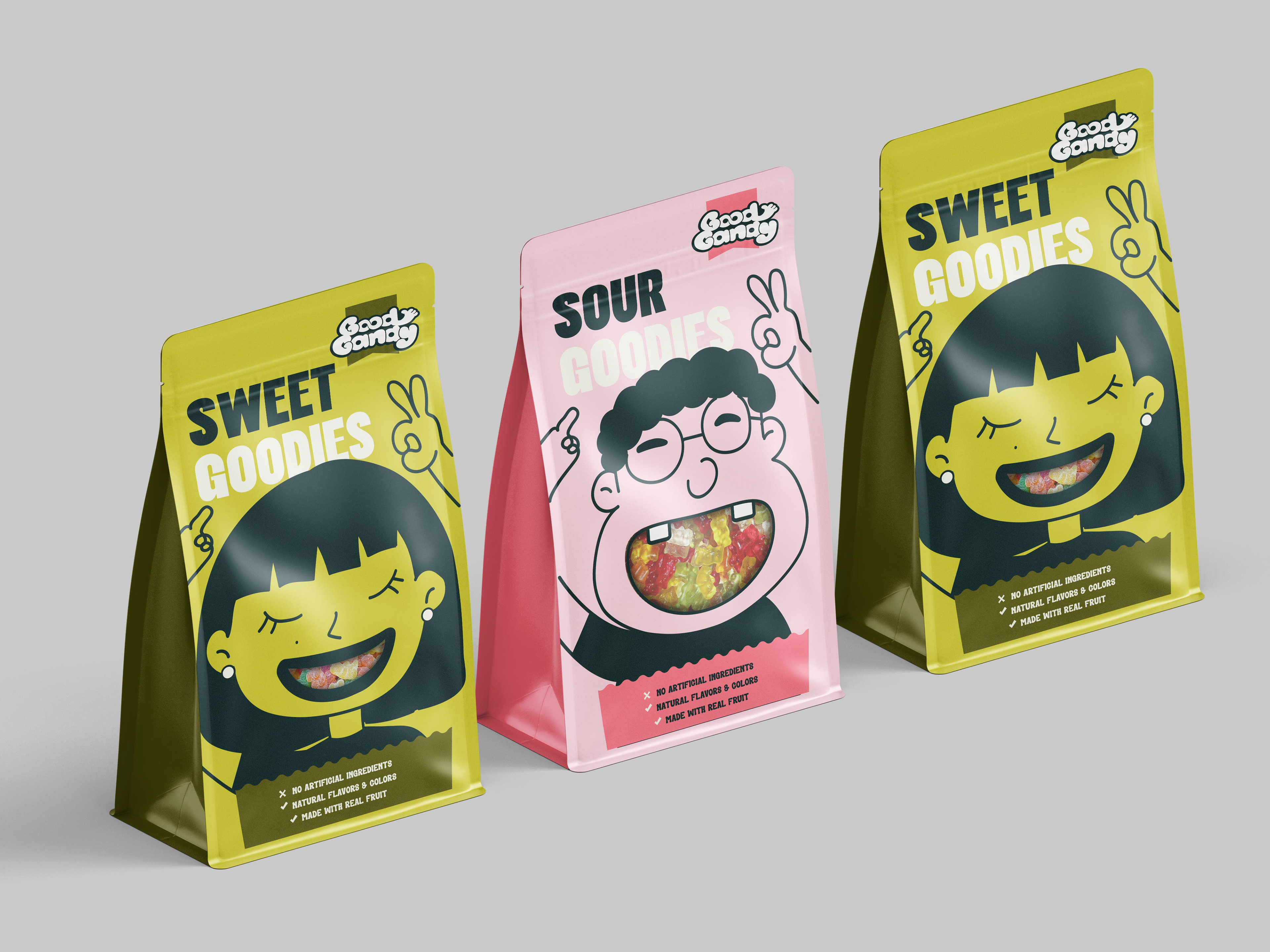 Design packaging for Good Candy brand from US With funny illustration to attract both kids and teenagers