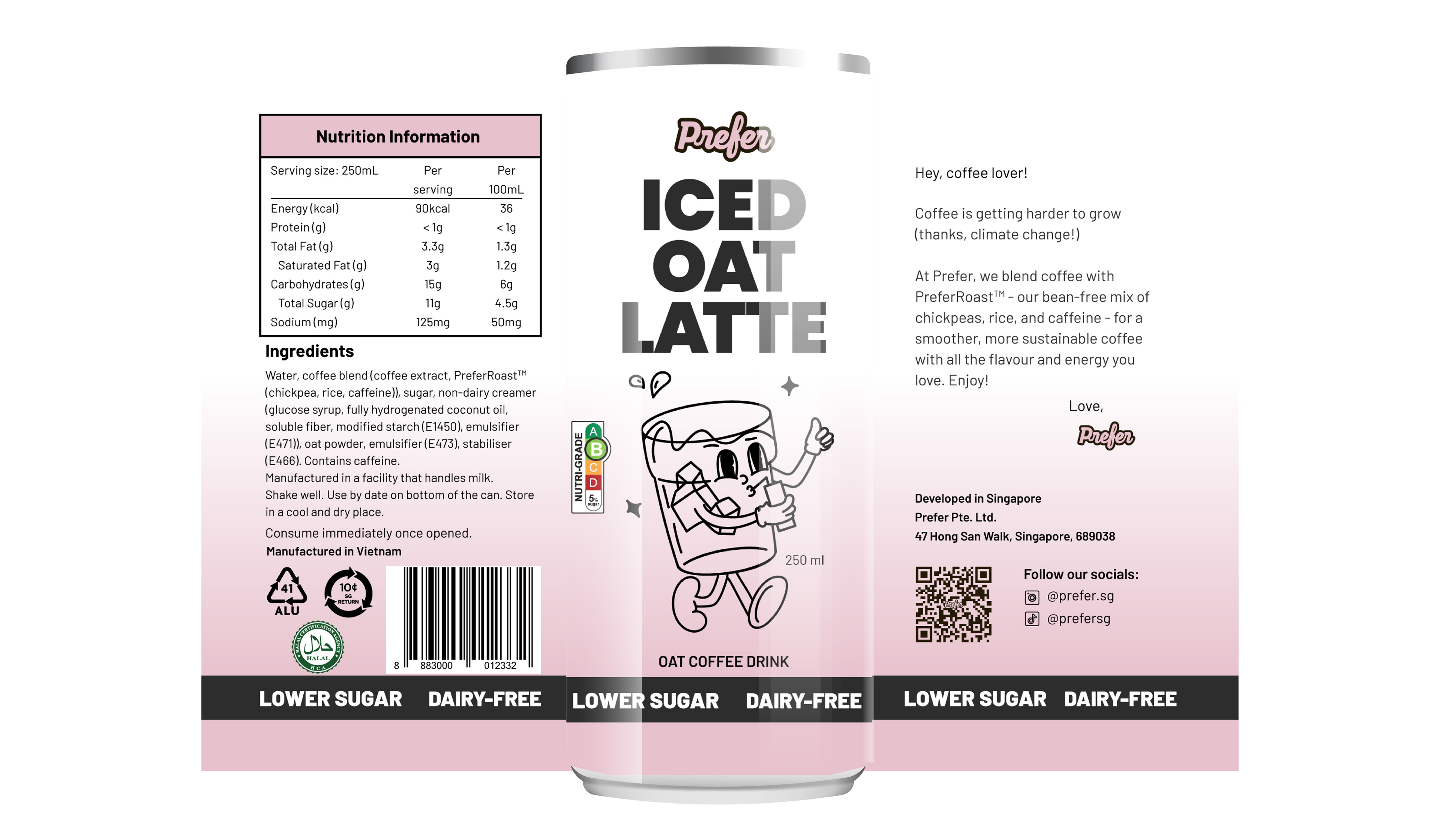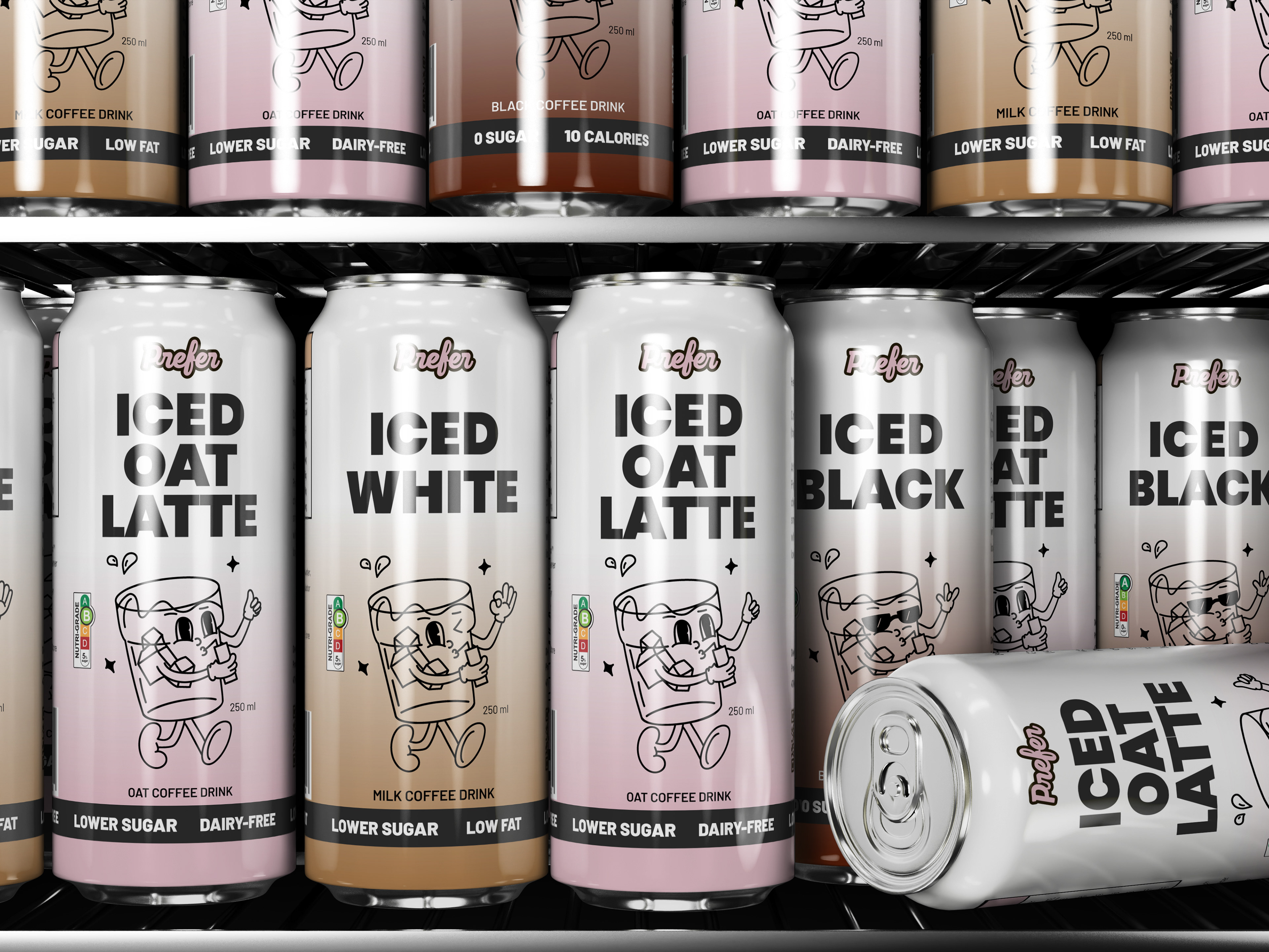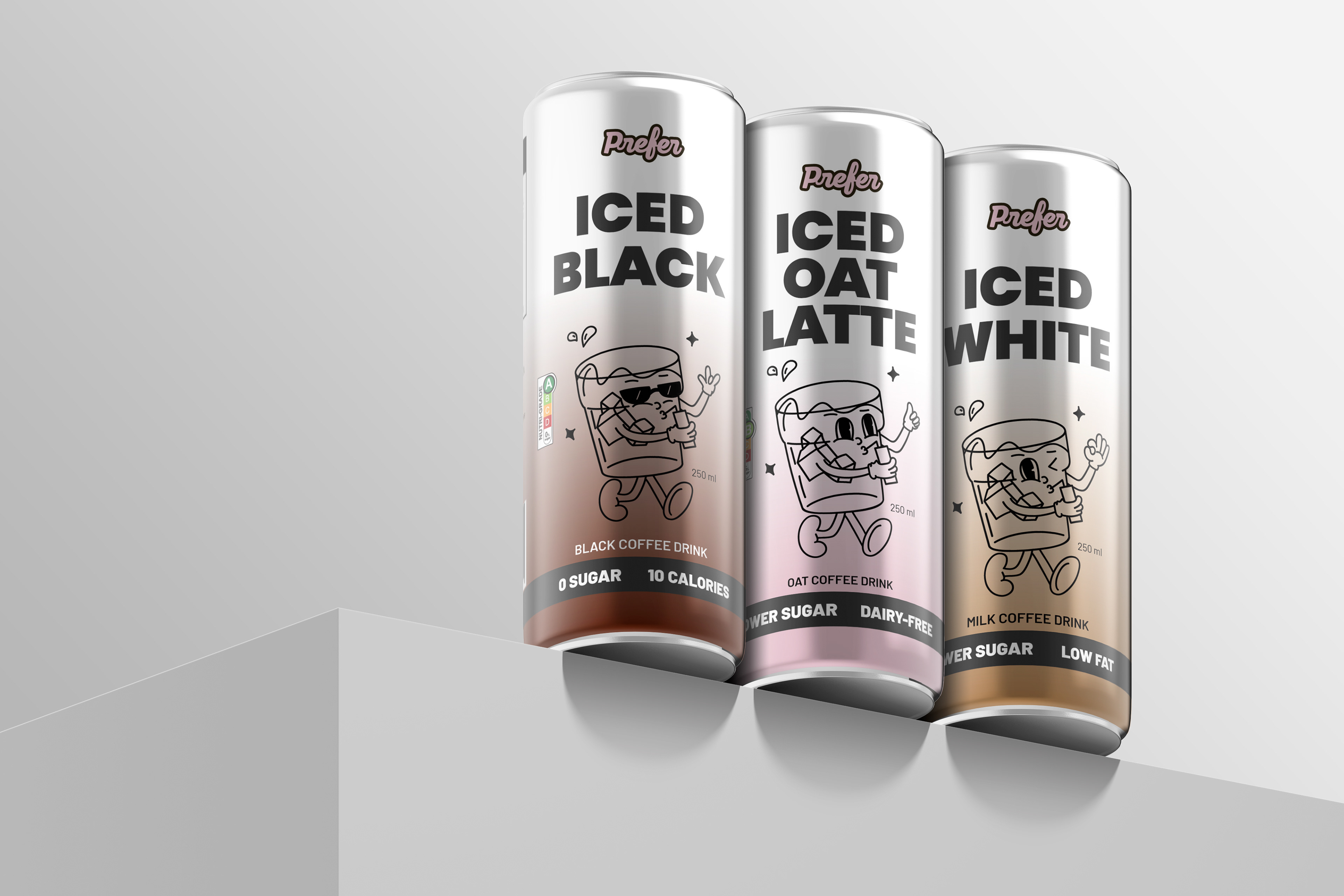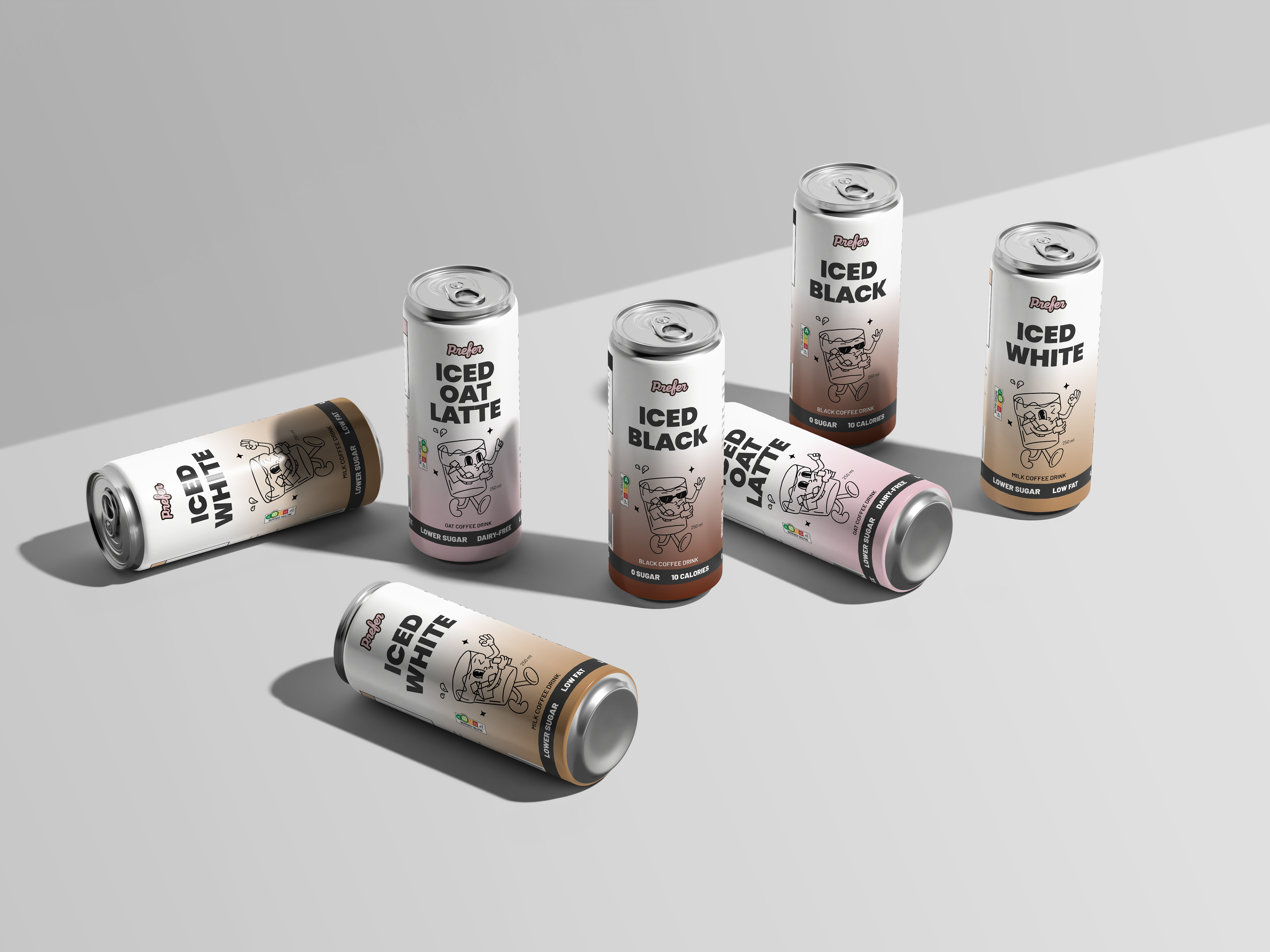 This project focuses on creating a cohesive packaging design system for Prefer’s innovative no-bean coffee line. The brief required developing a visual identity and packaging combo for three distinct SKUs, each showcasing a unique flavour profile while maintaining brand consistency.