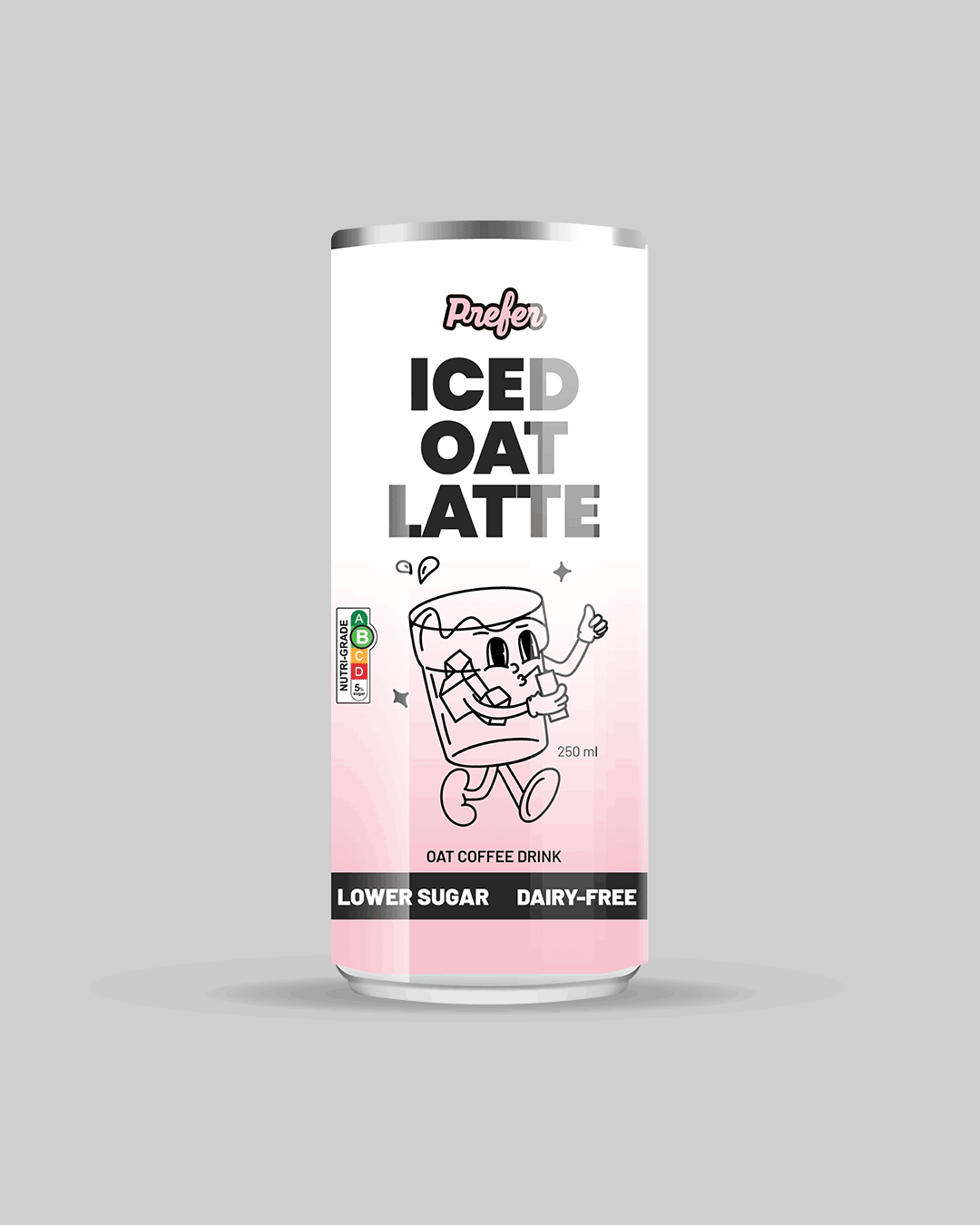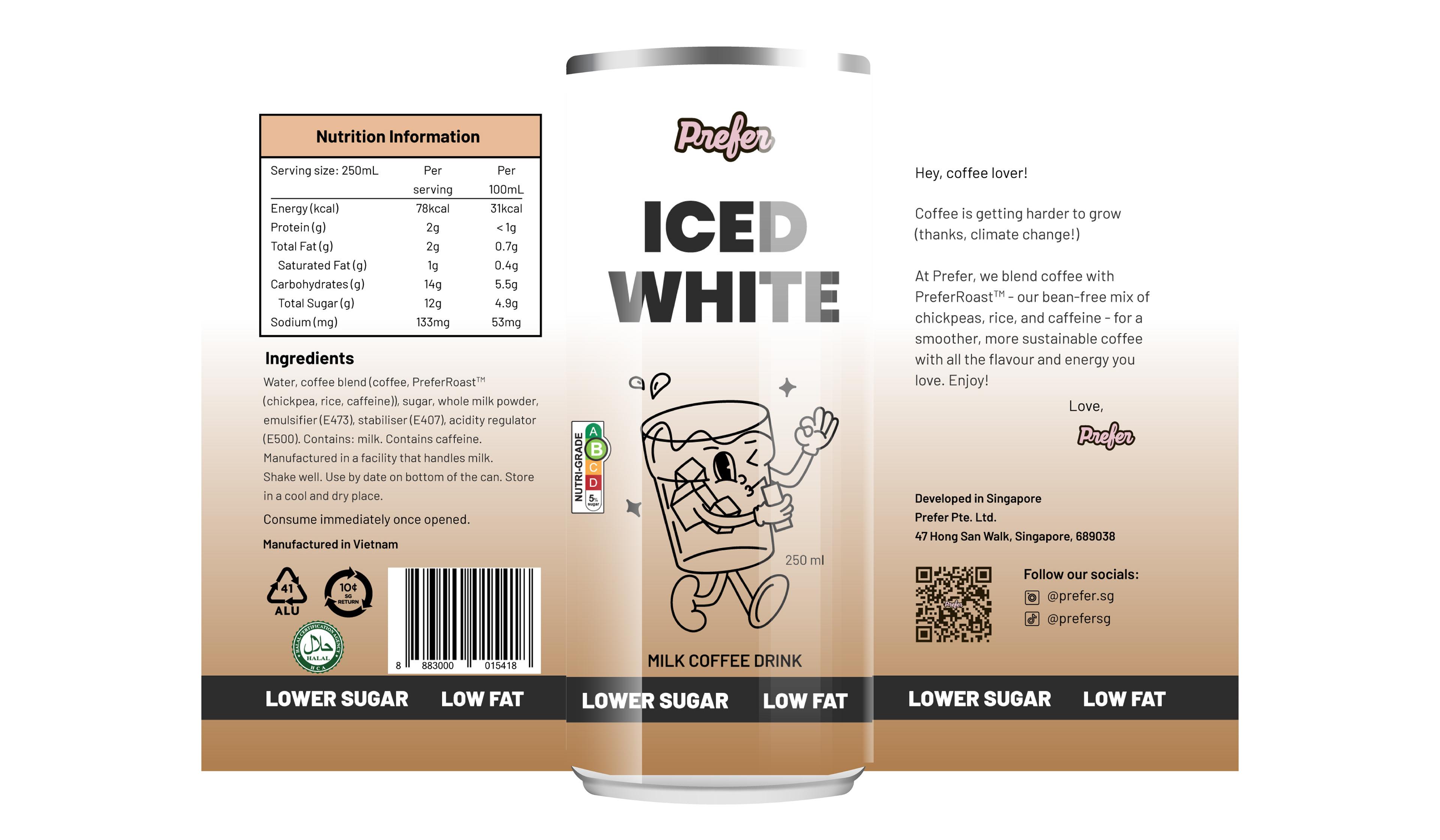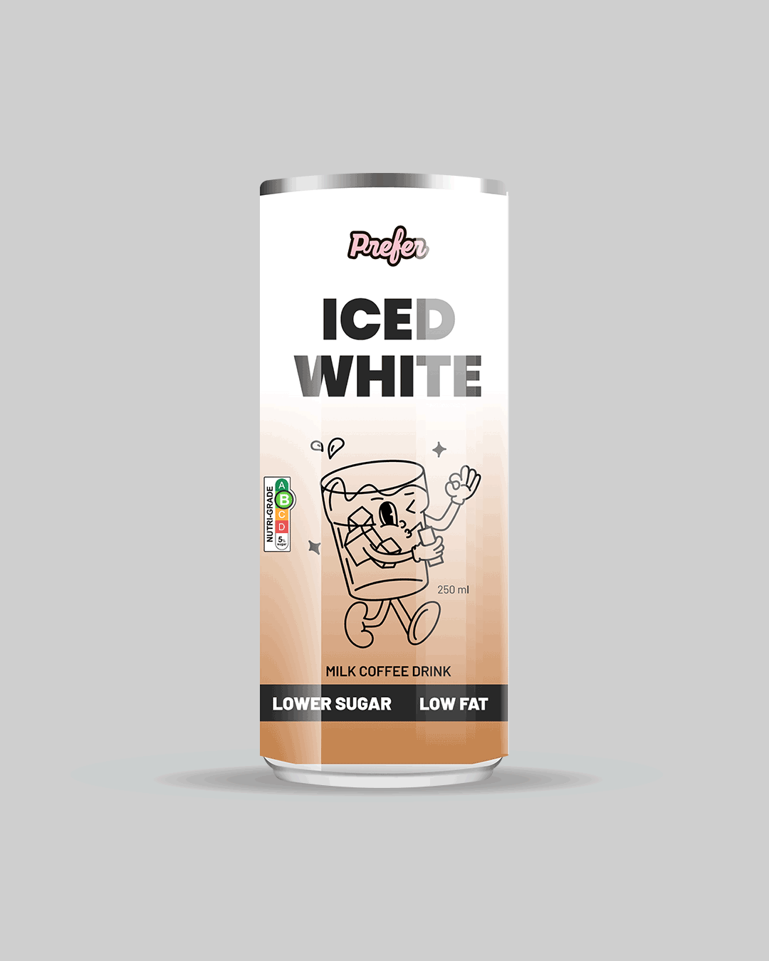 The concept centers around a playful illustrated character — a joyful glass of coffee — interacting affectionately with the product. This character not only adds personality and approachability but also symbolizes Prefer’s mission: crafting a lovable, sustainable coffee alternative through their bean-free PreferRoast™ blend.